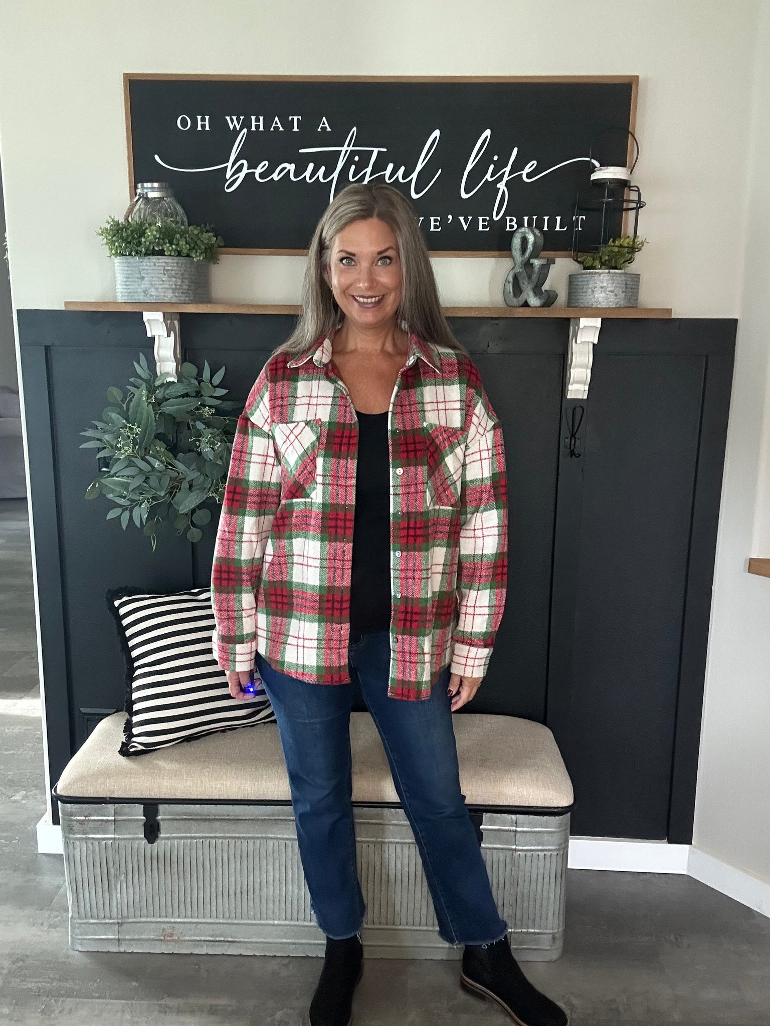 Stay cozy and stylish this holiday season with our Christmas Plaid Shacket. Made with a classic plaid design, this shacket is the perfect addition to any winter outfit. Embrace the warmth and comfort of the holiday season while looking effortlessly fashionable.