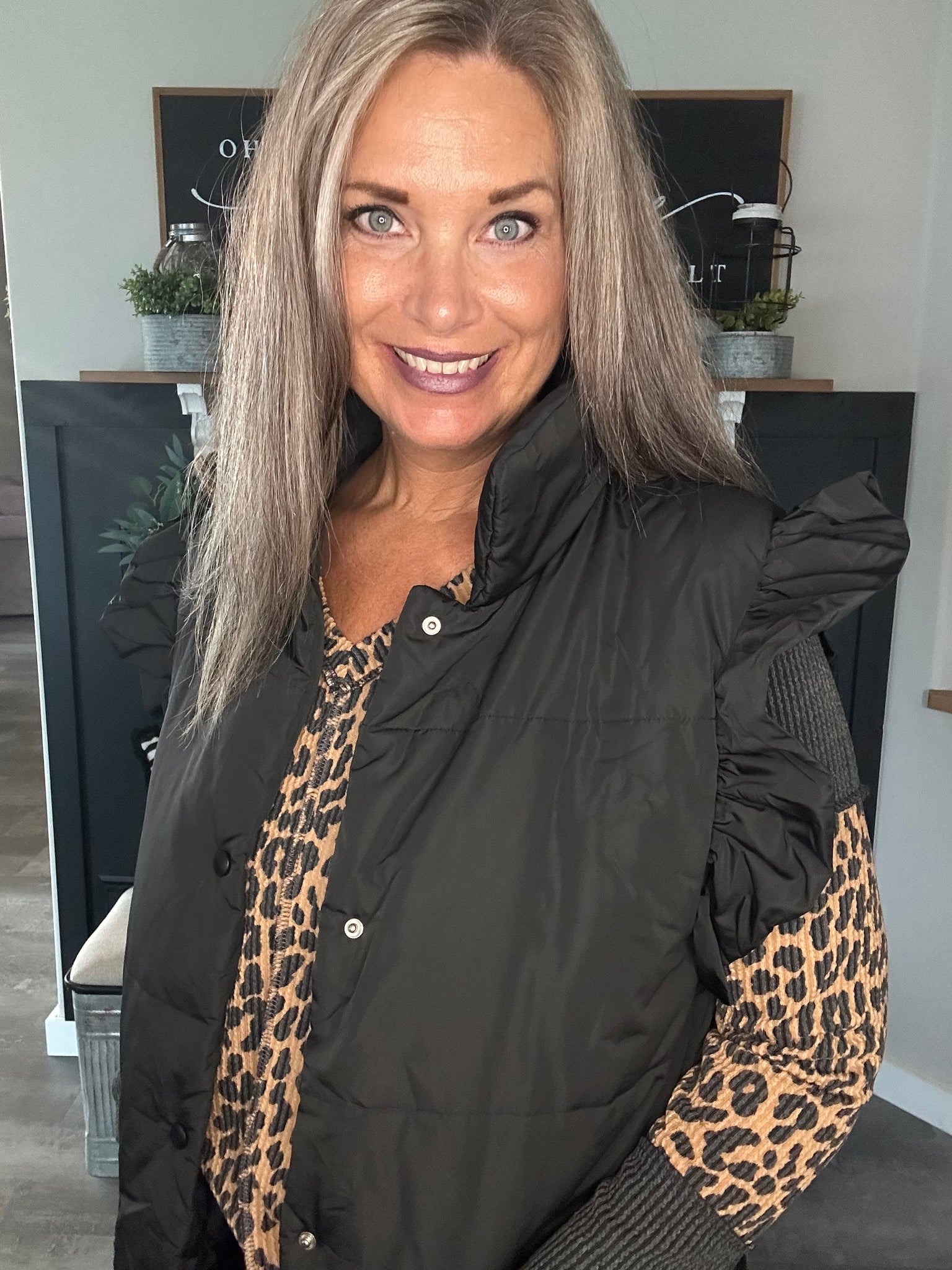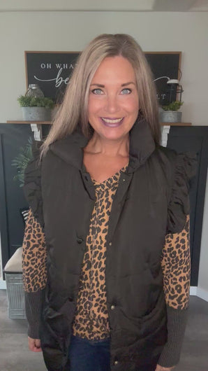 Get ready to flutter into style with our Flutter Sleeve Puffer Vest! This trendy vest not only keeps you warm, but also adds a touch of playful charm to your outfit. Don't miss out on the perfect combination of fashion and function.