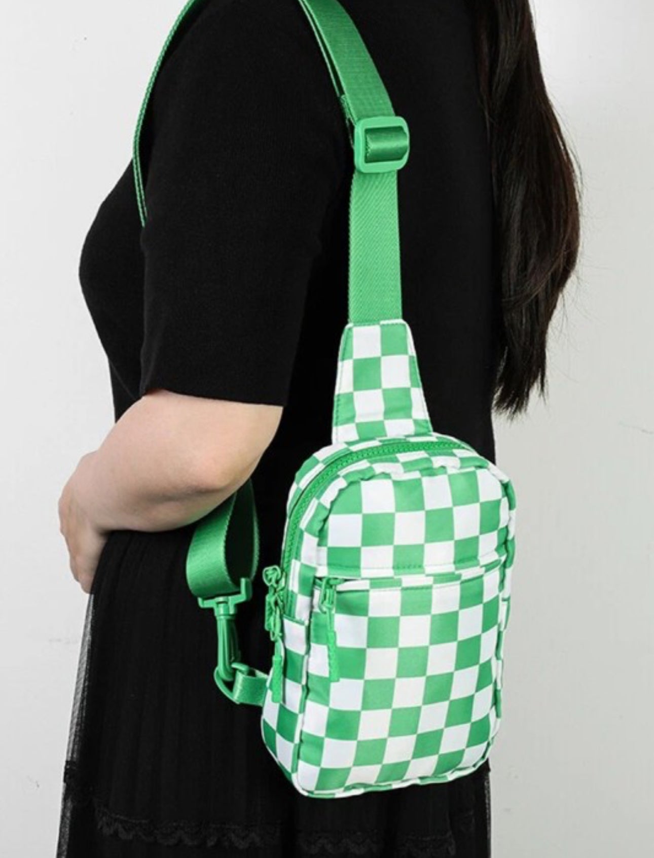 Effortlessly stylish and practical, our Green & White Checkered Sling is the perfect accessory for any occasion. The checkered design adds a touch of timeless charm, while the sling provides hands-free convenience. Make a statement and keep your essentials close at hand with this modern must-have.