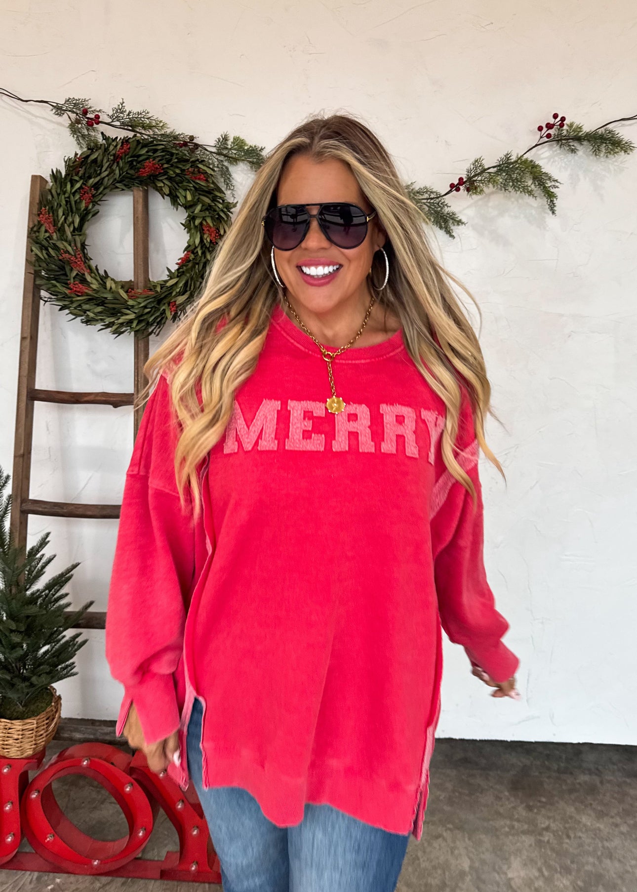 Embrace the holiday spirit in our Merry Classic Crew, a mineral-washed sweatshirt that perfectly blends comfort with festive style. This slouchy, relaxed-fit piece features exposed seams and a charming split cuff hem with ribbed details for added texture. The soft sweatshirt interior feels cozy against your skin, making it ideal for casual winter days and holiday gatherings. A seasonal essential that brings warmth and cheer to your wardrobe.