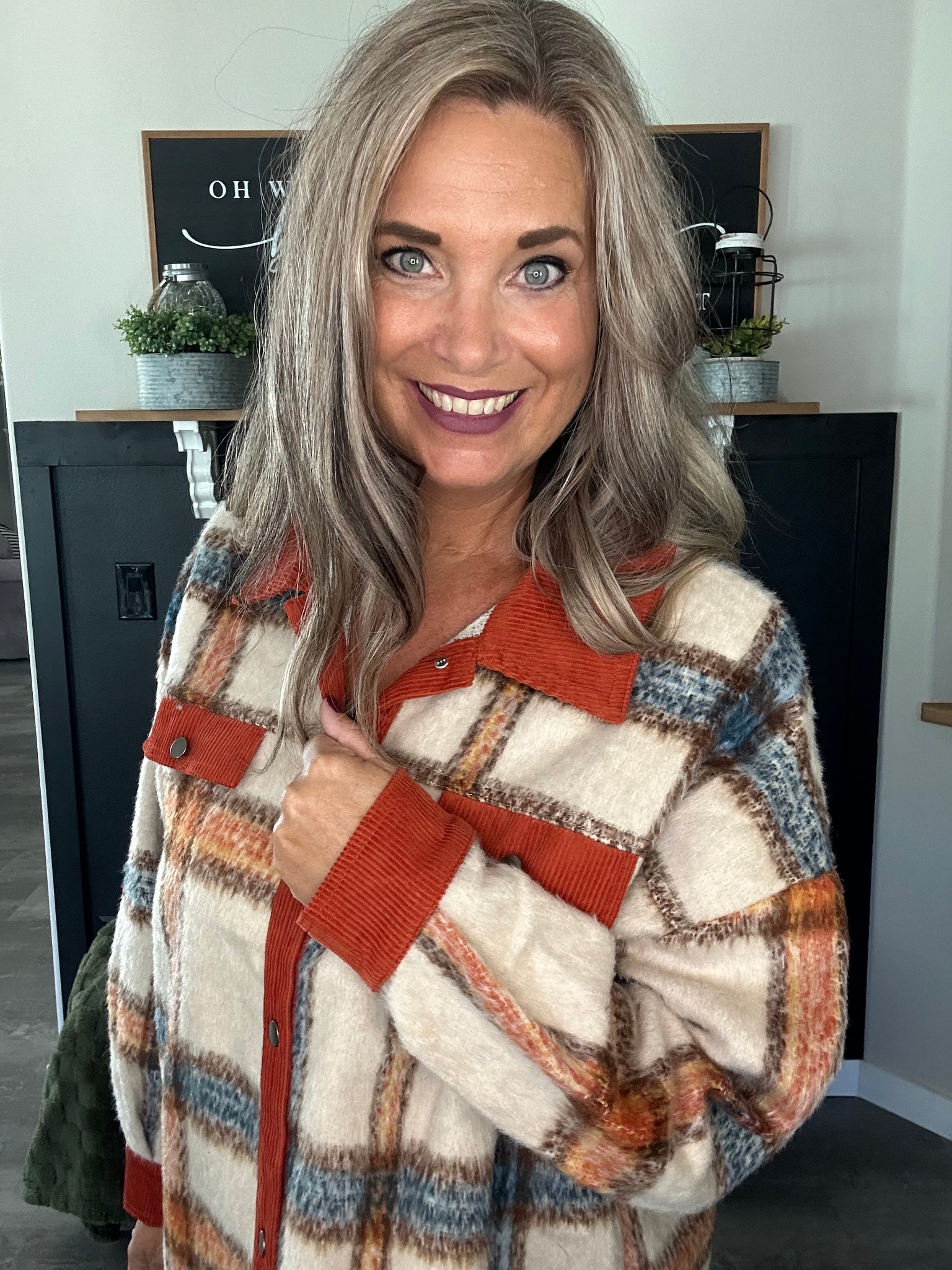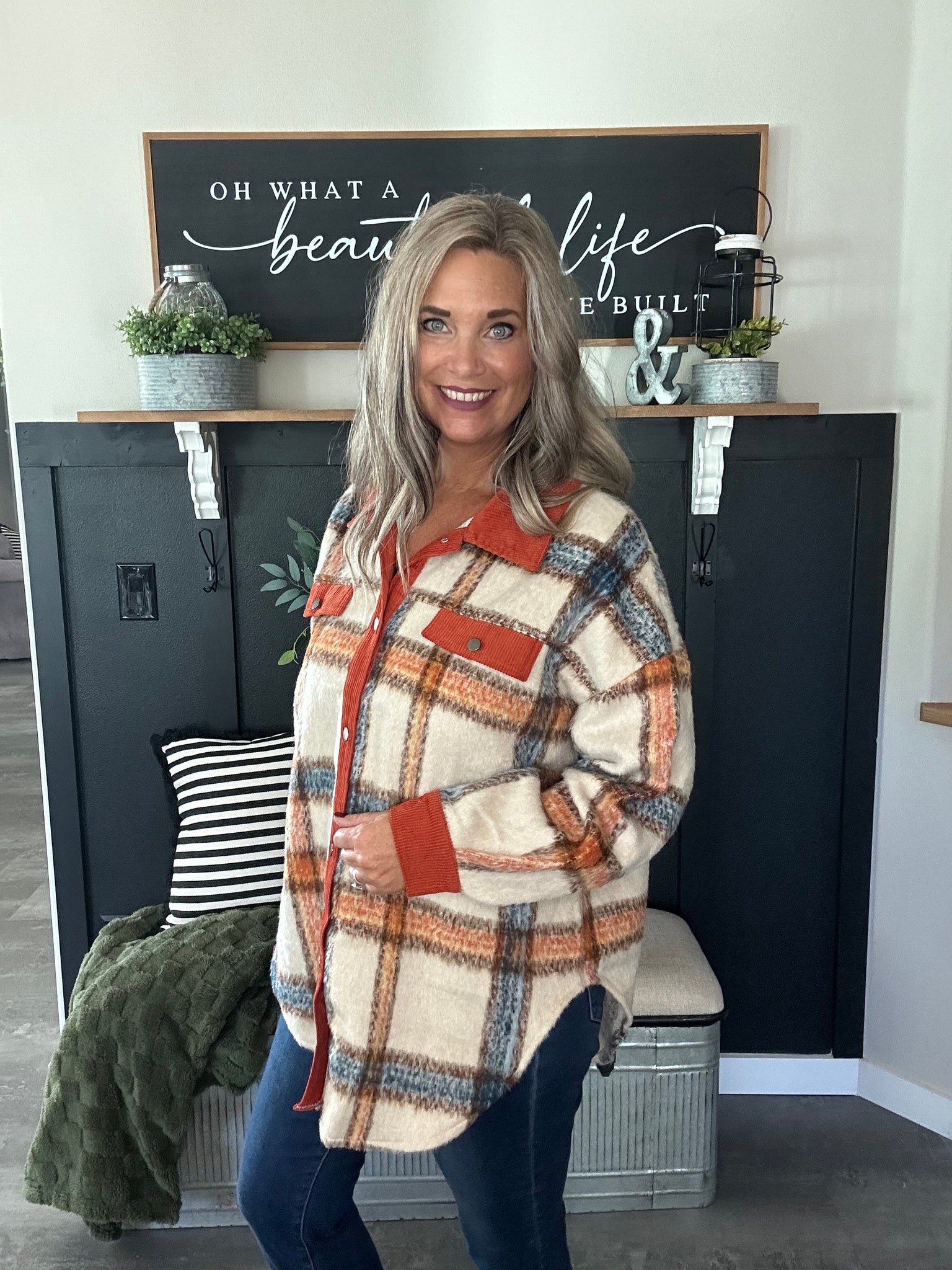 Stay stylish and cozy this fall with our Classic Plaid Print Shacket in vibrant colors. Perfect for plus size individuals, this shacket effortlessly combines fashion and comfort, making it a versatile addition to any wardrobe. Timeless plaid pattern adds a touch of elegance, making it a must-have for the season.