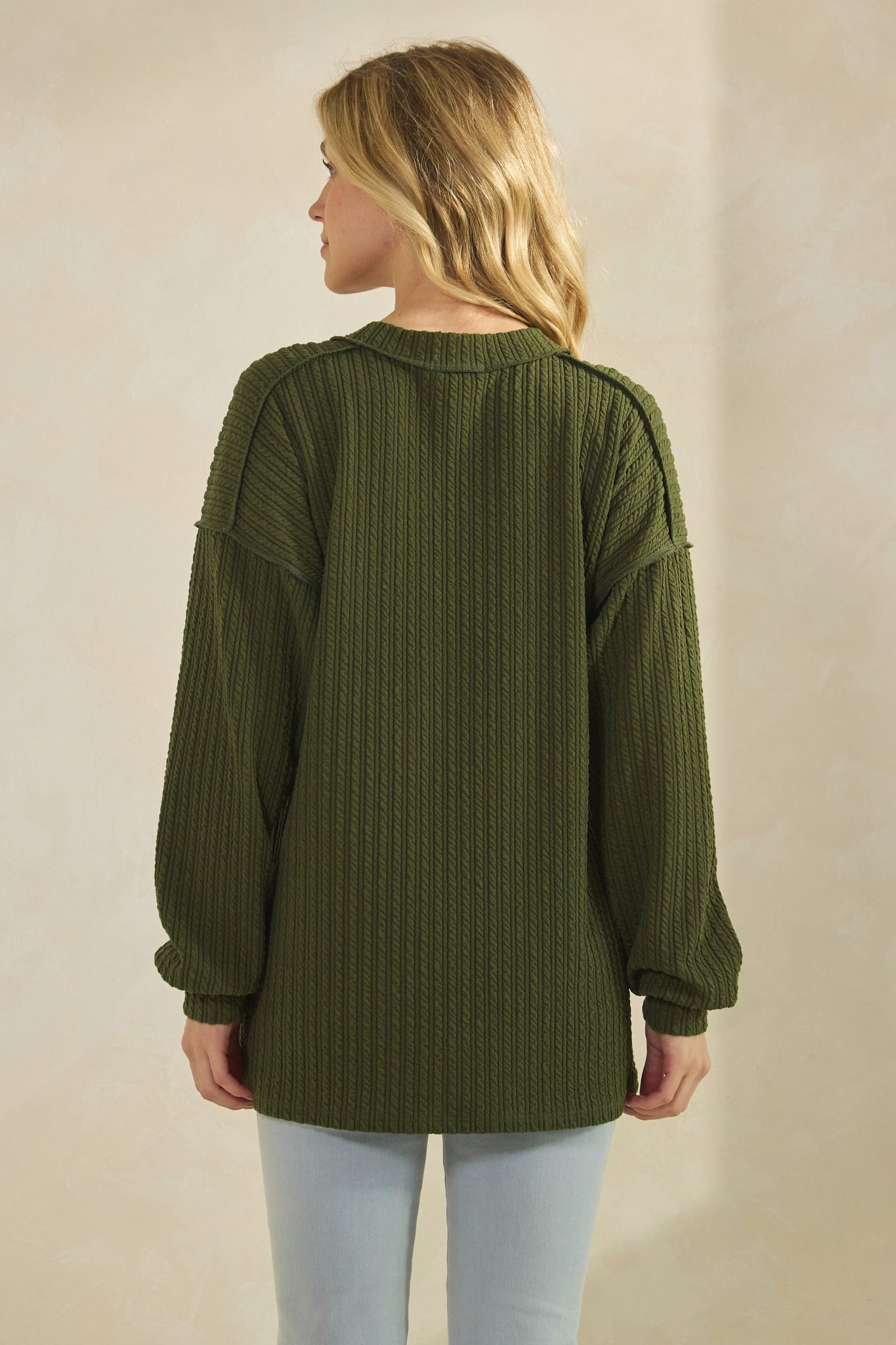 Elevate your wardrobe with this solid jacquard rib top, designed to impress with its long puff sleeves and elegant V-neck. The textured fabric adds depth and sophistication, while the flattering silhouette ensures you stand out effortlessly. Perfect for making a confident statement, this top combines style and comfort for any occasion.
