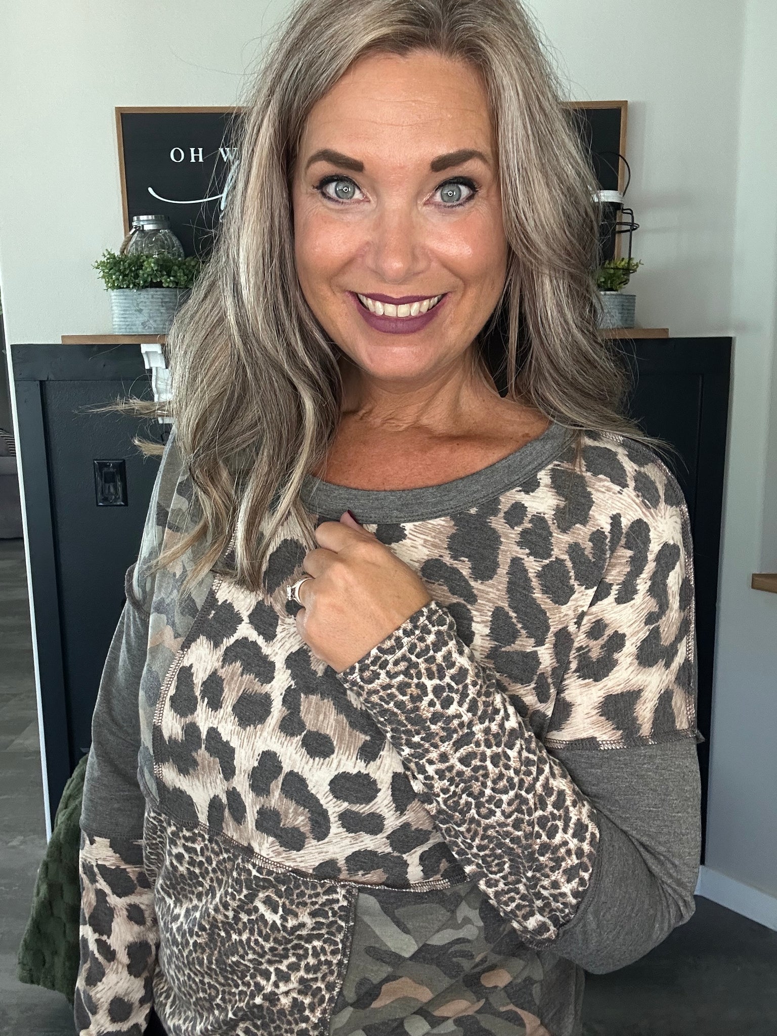 Bring out your bold side with this fun and cozy Wild Side Patchwork Top! Featuring a mix of leopard, camo, and animal prints, this unique long sleeve is a statement-maker you’ll want to wear on repeat. The soft knit fabric and relaxed fit make it perfect for pairing with jeans, leggings, or your favorite joggers. Dress it up with bold earrings or keep it casual—either way, you’ll turn heads!